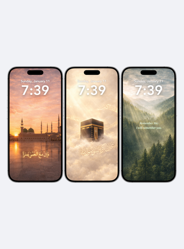 This exclusive set of 12 Islamic wallpapers is designed to bring calm, clarity, and remembrance into your daily life. Each design is rooted in dhikr and Qur’anic inspiration — perfect for lock and home screens that uplift your heart.